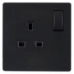 Black CAT6 internet socket, designed for high-speed network cable connections, ensures reliable connectivity.