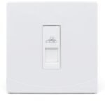 13 Amp white electrical socket, 25-year warranty, ensures safe appliance connection in homes or offices.
