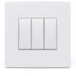 A white triple switch from Cidra. Designed to control three lighting circuits, suitable for homes or offices.