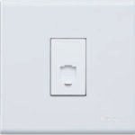 فيش تليفون أبيض، مصمم لتوصيل خطوط الهاتف، يوفر اتصالًا موثوقًا بتصميم أنيق.